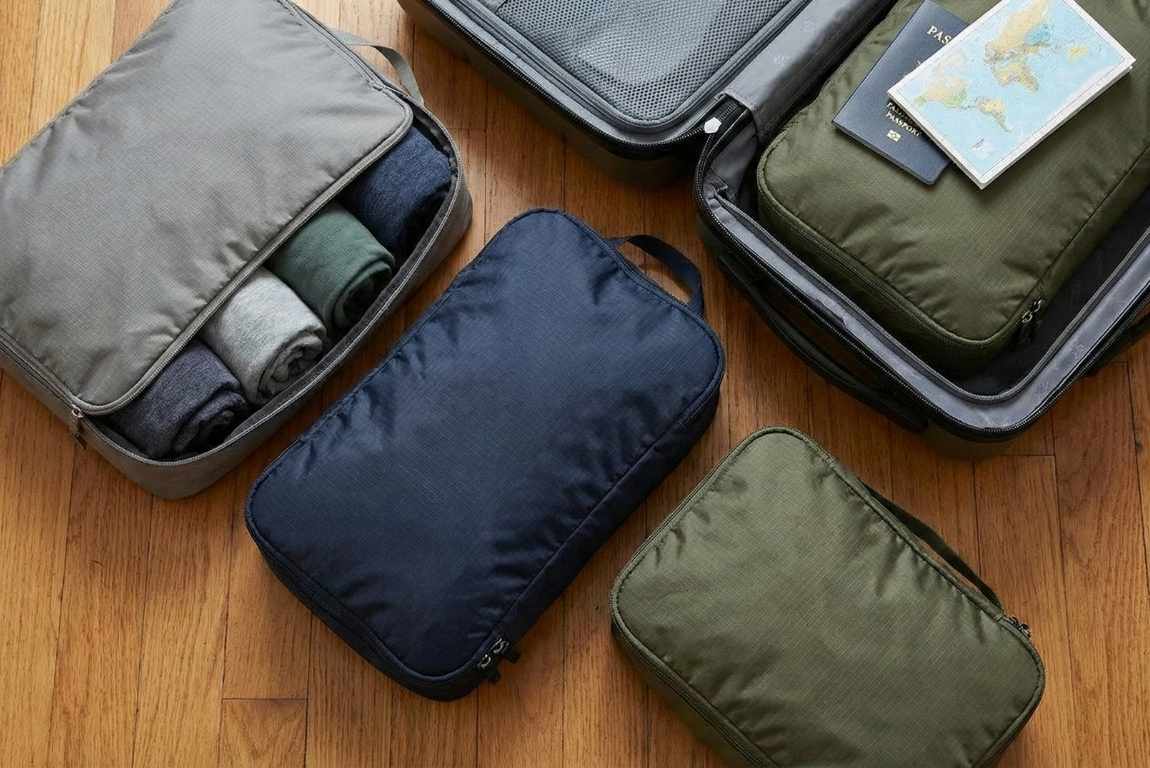 Compression packing cubes impose structure. Each cube holds a category—tops, bottoms, essentials, electronics—and compression zippers reduce bulk while keeping everything contained.